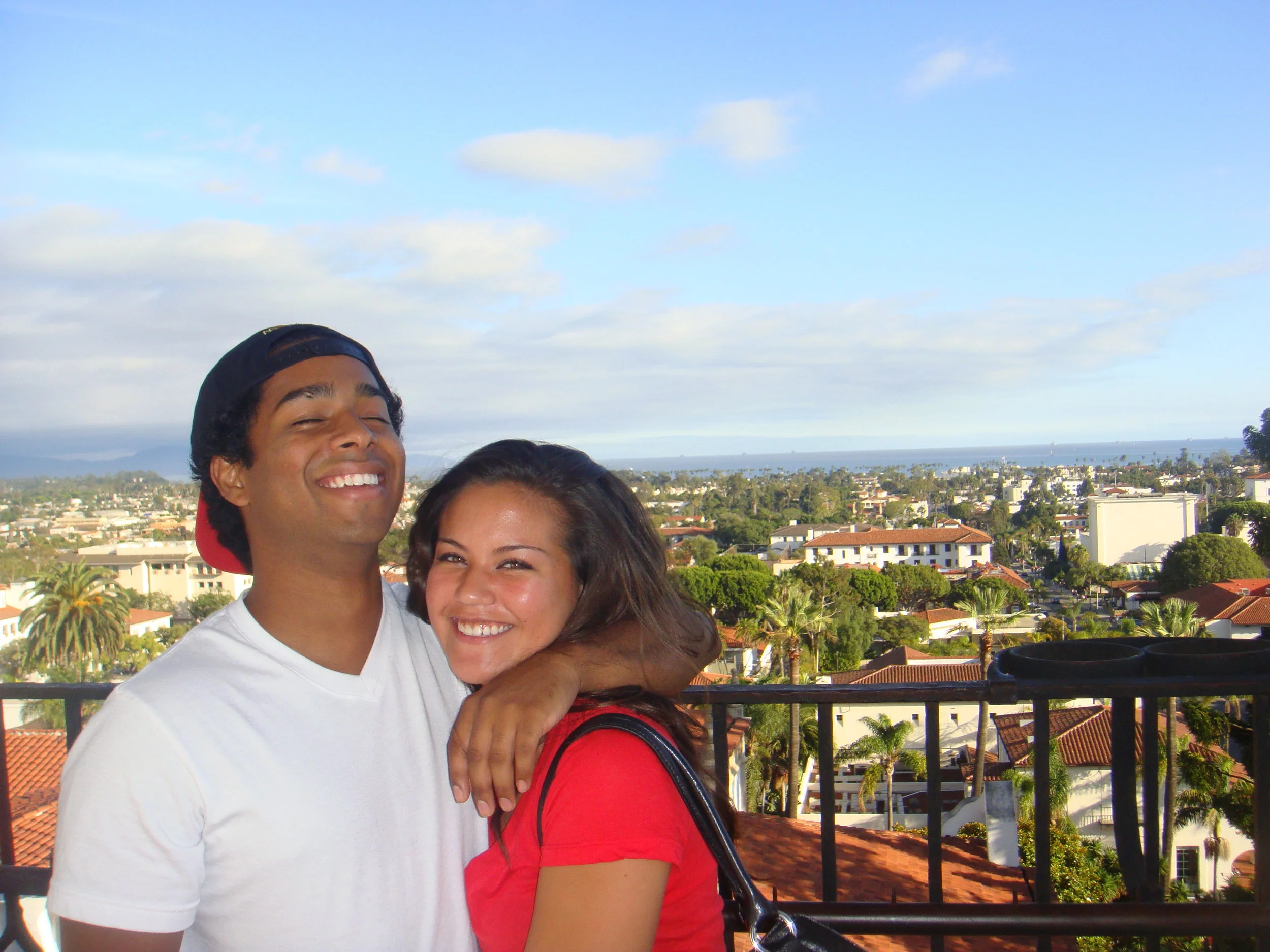 We met in February of our freshman year at UC Santa Barbara (2008), outside of the De La Guerra Dining Commons. We had both gone to Late Night meal with our friends, and sat at tables next to each other. Max had seen Brandi around campus and Santa Barbara a few times throughout the year, but was always too nervous to say anything. Because the year was almost coming to an end, he knew this was his last chance. So after we both left Late Night, Max ran up to Brandi outside of her dorm and told her "I think you're really cute."